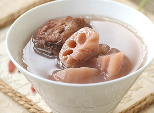 原料:莲藕2根(约500克)腔骨500克姜6片清水2000ml 调料:盐2茶匙(10克) 做法:
