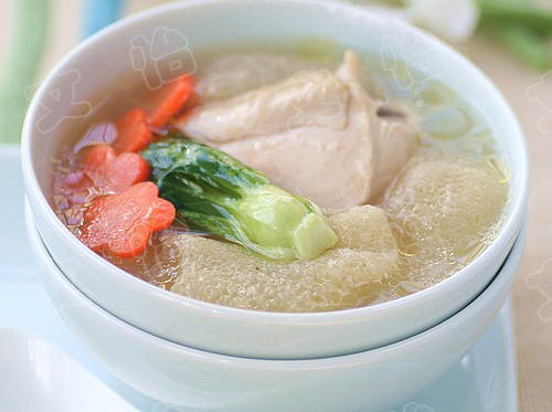 做法:1、将柴鸡半只,洗净斩成块。竹荪用冷水浸泡10分钟,只要竹荪回软发脆即可。2、将鸡块放入开水中焯烫一下捞出,用清水冲净鸡块表面上的浮末。将鸡块放入砂锅中,一次性倒入足量清水,放入大葱,姜片,待汤沸腾后,转小火煲1小时。3、趁着煲汤的时间,将浸泡回软的竹荪,切去头和尾部的网,放入温水中焯烫20秒钟,去除竹荪的生涩味。捞出后,用冷水洗净,放入汤锅中,继续煲30分钟。4、最后,可以放一下小菜心和胡萝卜片在汤中,煮2分钟后即可关火,根据自己的口味,放盐调味即可。