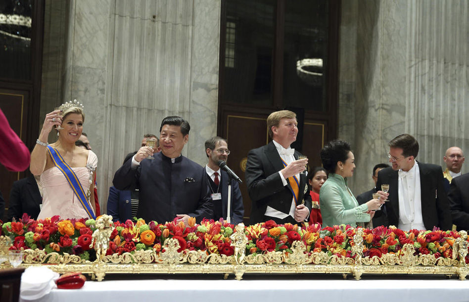 古老的阿姆斯特丹王宫,郁金香绽放,喜迎中国贵宾。2014年习近平和夫人彭丽媛身着中式服装,出席威廉-亚历山大国王举行的盛大国宴。两国元首深入交谈、亲切交流,历时四个小时。习近平在荷兰皇室国宴上吃了些什么呢?