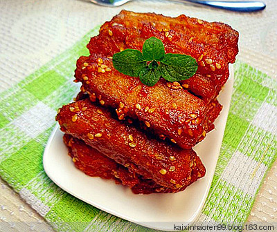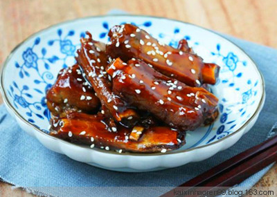 做法:1)准备原料和调料2)将排骨洗净剁成3厘米长段3)将排骨放入锅煮至八成熟4)捞出放盆内,加入盐、酱油腌入味。5)锅中放油烧至六成热,下排骨炸至淡黄色捞出油温加热至八成,再下锅炸至金黄色捞出。6)炒锅留少许油烧热,下入葱花,姜末爆香,放入番茄酱7)加入适量清水、酱油、醋、白糖、料酒调成的汁8)倒入排骨,烧开后用慢火煨至汤汁浓,排骨熟,淋上熟油,出锅即可。
