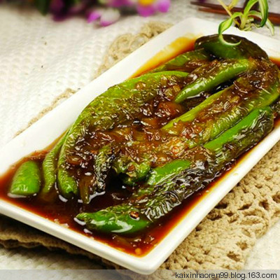 做法:1)尖椒洗净去蒂,去籽。2)去一碗加入糖 醋 盐 淀粉 和清水搅拌均匀成糖醋汁。3)煎锅加入少量的油,下入尖椒。4)用小火煎至表皮出现斑点。5)盛出,码放在盘中。6)锅中放油,爆香葱碎烹入勾兑好的汁,烧至汤汁粘稠7)浇在煎好的尖椒上即可。