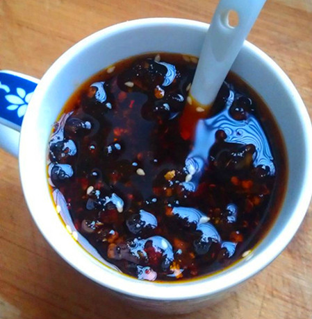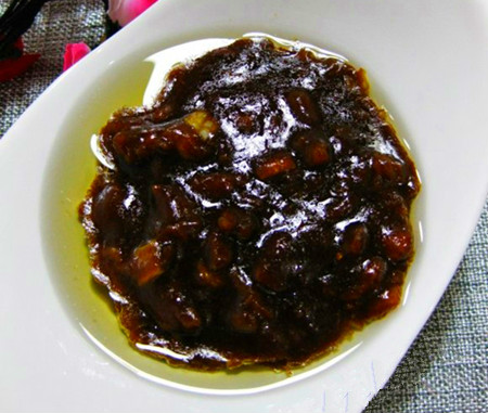 做法:1)准备原料2)豆豉稍稍清洗一下,沥干水后,放入捣盅里3)然后加入蒜子一起用捣锤捣成碎泥状,但又不能太过茸烂啦4)捣成象这样就可以啦,主要是为了让豆豉和蒜子能更好地融合在一块,互相借味5)小火,冷油,下花椒慢炸6)花椒出味后,用筛把它捞出来不用7)然后把捣烂的豆豉酱放入锅内,慢火熬制8)此时再加入辣椒粉,可选用稍大片的辣椒粉,太细一炸容易糊9)放入极少量的盐10)加入白砂糖11)再放点生抽12)小火熬5分钟,然后关火摊凉就可以啦~