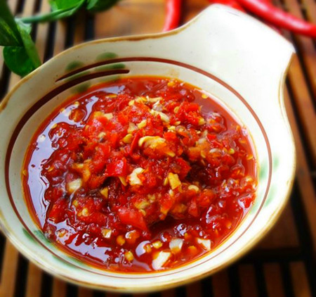 做法:1)红辣椒用水洗净2)煎去把儿,晾干3)切成丁4)入料理机打碎5)加盐6)加糖7)加豆酱8)加蒜末拌匀9)装瓶10)如果做的量多,可以在瓶口倒上麻油