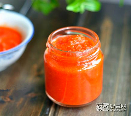 步骤:1)红椒洗净去籽去蒂,西红柿去皮。2)生姜切碎片放入料理机杯子。3)放入西红柿块,一汤匙精盐。4)开动机器把西红柿,姜片打成泥。5)把打好的西红柿汁倒入干净容器备用。6)红椒切成小段后放入料理机杯子。7)把红椒打成泥。8)把红椒泥倒入干净容器,备用。9)大蒜去皮后放入料理机,加少许精盐。10)开动机器,打成蒜泥。11)锅里倒入植物油,油热后倒入西红柿汁,细火炒制。12)等西红柿汁粘稠时倒入白糖,炒成西红柿酱。13)倒入两汤匙精盐。14)倒入白醋,白醋要根据喜好自己酌情掌握倒入的量。15)炒制西红柿酱粘稠,倒入辣椒泥。16)小火炒制粘稠。17)倒入蒜泥,关火。18)搅拌均匀即可。19)等辣椒酱晾凉后即可装瓶。