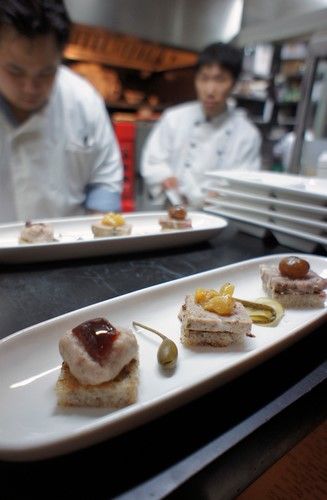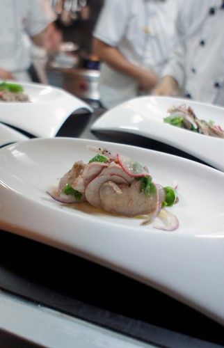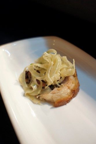 10:猪腿卷配鹅肝酱。腌红洋葱