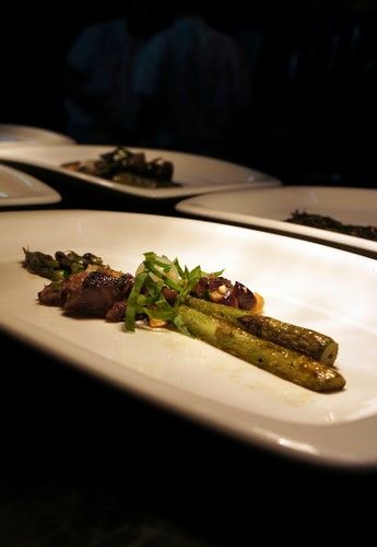 烟熏味、咸鲜味十足的熏猪鼻,配搭时令的紫芦笋,微微透露着鲜甜。酸摩和洋葱都是用来平衡猪鼻可能带来的肥腻感。