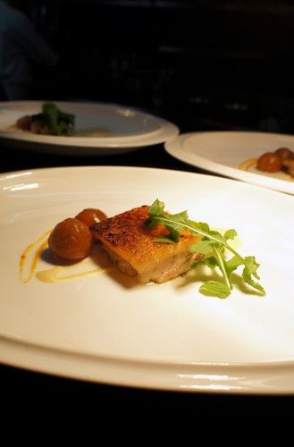 用鸭油煎的五花肉,肥肉部分入口即化,猪皮则散发着港式烧肉的香脆。樱桃番茄和芝麻菜都是用来平衡五花肉不可避免的油腻。