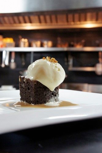 用培根和蜂蜜制成的冰淇淋,入口香甜,而回味泛出培根的烟熏口感;自制的巧克力布朗尼浓郁香甜,与培根冰淇淋相得益彰。