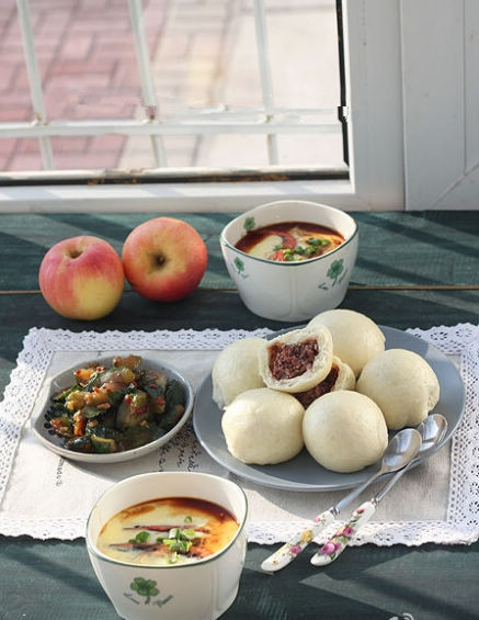 8、自己做的豆馅,蒸了一锅豆包(豆馅和包法博客里都有)冷冻保存,早晨起来蒸锅热一下就可以了;