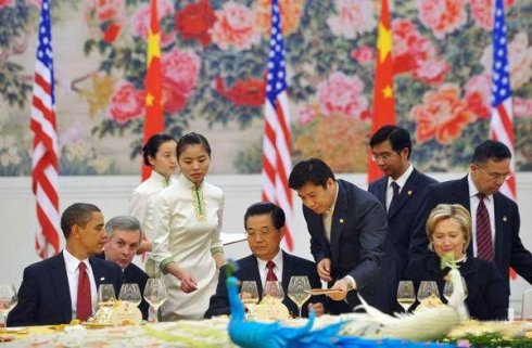 胡锦涛在人民大会堂金色大厅奥巴马国宴菜单