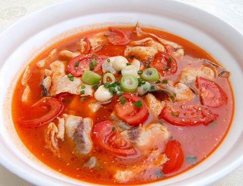 材料:黑鱼、西红柿、姜、葱、料酒、盐