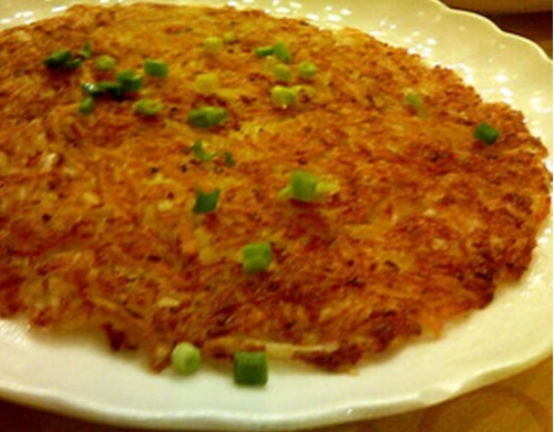②将炒熟的碎猪肉、盐、味精拌入土豆泥,做成饼状。