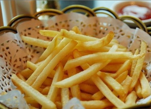 ②下锅炸,将油倒入锅中加热,然后将薯条放入锅中,炸至呈金黄色后起锅。