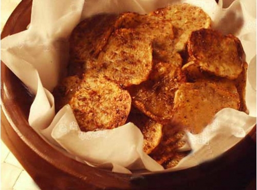 ②锅内放少许油,加热,放入白糖,不停搅拌,待糖熬成糖稀后,倒入炸好的土豆,不停翻炒,直到土豆全部都沾到糖稀,立即出锅。此品外脆内软,香甜可口,但需乘热吃,否则会变硬。