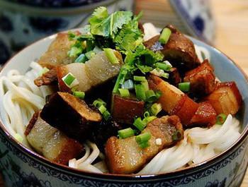 原料:鲜面条200克、五花肉200克、双孢菇120克、葱段30克、姜片15克、八角2枚、酱油20克、绍酒20克、盐2克、白糖20克、味精2克、胡椒粉1克、烹调油15克