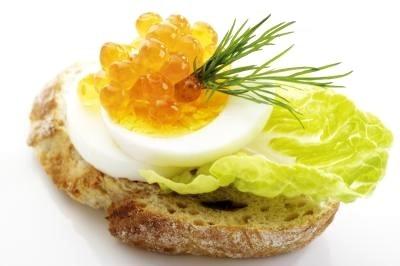 材料:蛋、鱼子酱、洋葱、莴苣和法式蛋