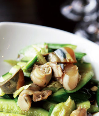 厨师继续不动声色地炫耀着他的食材,接着就有了生拌梭子蟹。母梭子蟹被大卸八块,这个季节自然有半只蟹都是浓浓的蟹黄,纵使被毫不吝惜地加了芥末大蒜醋生抽众多的味道来腌制,那个蟹黄最后还是很争气地鲜得要命。