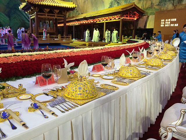 APEC第二十二次领导人非正式会议, 欢迎晚宴是国宴规格,各种细节考究到位,突出中国特色,将中国传统饮食文化再一次推向世界。