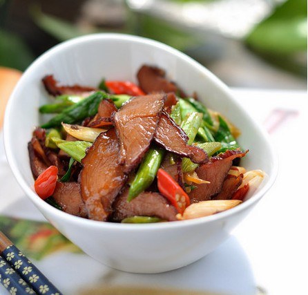 有着烟熏味道的腊肉吃起来有股久远的味道,厚重、深沉、沧桑是沉甸甸的滋味,彷佛一个长者,黑红干涩的色调里都是故事。
