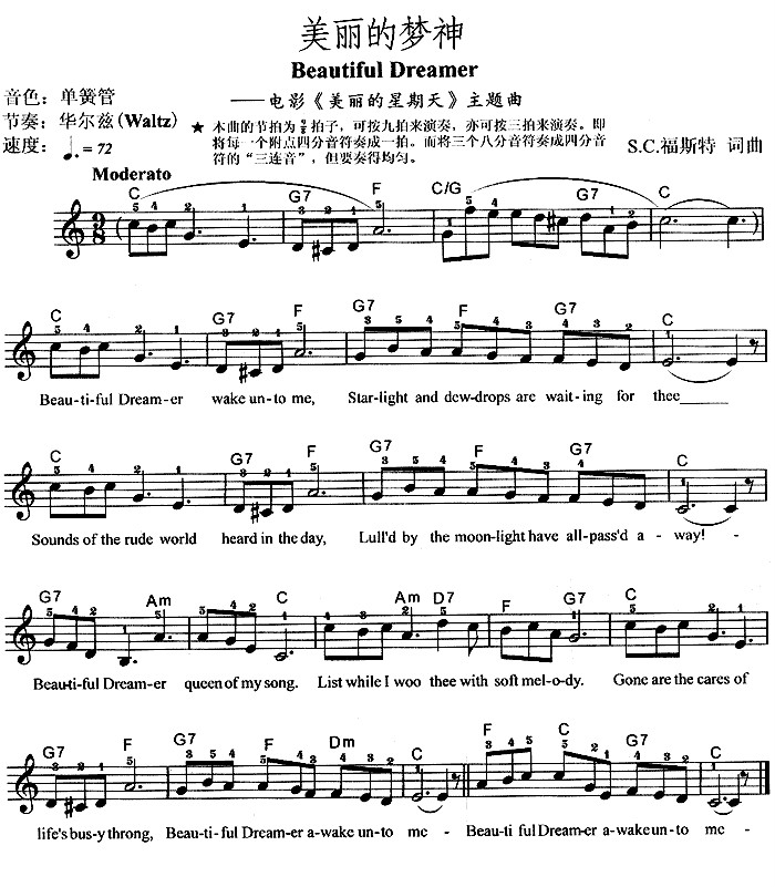 电影《美丽的星期天》主题曲 - Beautiful Dreamer(美丽的梦神)