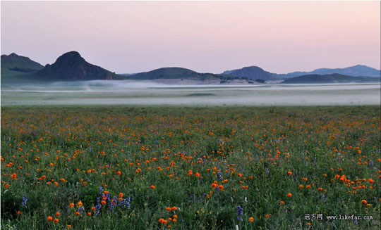 看过《还珠格格》的人,一定还记得美丽的月亮河,小燕子、五阿哥他们策马驰骋的茫茫草原,万倾林海,这里就是美丽的木兰围场。“天苍苍、野茫茫,风吹草低见牛羊”,长久以来草原都是人们向往的地方。试想在微风吹拂下,繁茂无垠的纤纤碧草掀起层层波浪,宛如大海翻滚的波涛,接天映日,该是何等的壮观迷人,更何况那满天满眼的五彩斑斓的野花,知名的与不知名的,都热情地绽放着。木兰围场,也叫塞罕坝森林公园,地处河北和内蒙古交接之处。"塞罕坝"为蒙古语,意思是美丽的高原,这里的草原属于我国三大草原之一的锡林郭勒大草原,而且这里还是我国最大的人工林场,整片的云杉林、白桦林,楚楚动人的淡紫色马兰;绚丽耀眼的金莲;永不凋零的补血草和白色的唐松草,构成了旖旎多姿的鲜花世界。