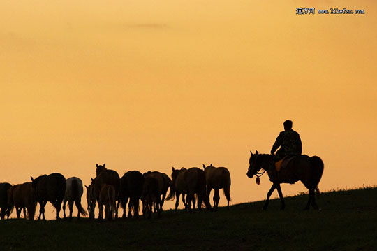在军马场西北面约20公里,草原辽阔,夏季这里也是百花齐放,郁郁葱葱,许多人喜欢在此放马飞奔,而秋季在此看日落是最适合不过了,看着绚丽的云彩渐渐引退于天际,可以感觉到当年戎马生涯,浴血沙场的气势。