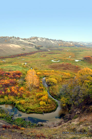 御道口最美的地方,在御道口牧场总场以北。整个景区由缓丘陵、天然次生灌木丛林地、湿地、河流与湖泊组成。