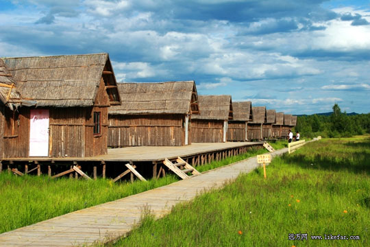 像北斗星一般,形象地排列在草原上。当地人说,在康熙皇帝御驾亲征叛匪葛尔丹的乌兰布通之战中,这里曾是诸放粮草的地方,有一夜着了大火,康熙皇帝情急之下大呼“老天”,很快天降下一场大雨,浇灭了火,保住了粮草,也保住了战争的胜利。雨后地上留下七个大水泡子,人们说是北斗七星的来助阵,就叫它“七星湖”。七星湖上有快艇在水上飞驰,湖边还有木制栈道可以沿湖散步。