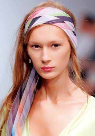 如果你是直发,直接用丝巾将头发束起,打上个大大的蝴蝶结,就能将优雅与动感两个Style双剑合璧。而卷发则特别注意,别把整个头部裹成方形。发型大师告诉我们,如果你实在很难搞定柔软的丝巾,不妨先把头发整理成你最满意的样子,然后直接把丝巾折细,像发箍一样系在头顶中央1/2处即可。