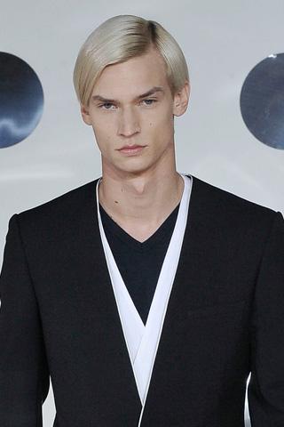 男模一缕缕的湿发造型,是未来太空感的发型趋势。色彩反映出一个人的个性,并且可以用来增加发型的深度、强度及质感,搭配饱满的炫色光彩,让2009年度Remix系列发型都是有形有色。