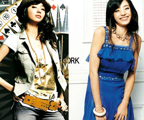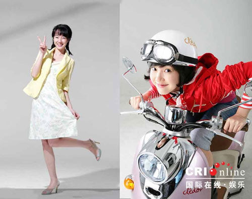扎起两只小辫,是林秀晶的经典甜美少女形象。可爱小短发+摩托帽,变身活力女孩。