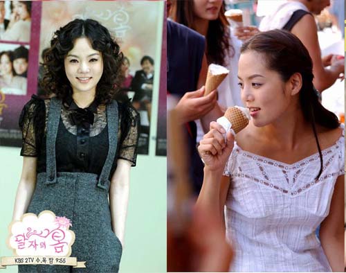 将长发烫卷后,或抓梳成两只辫子展现少女形象天真活泼,或披发变身优等小女生。