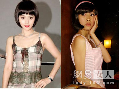 《非常完美》里面范冰冰发型(左)网友模仿发型(右)