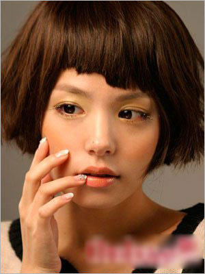 可爱娃娃头:一字的刘海很显清纯,看起来轻薄又俏皮。这款发型在韩国现在可是大热哦!