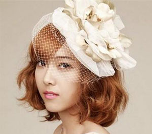 红栗色的中短卷发十分抢眼,蓬松的卷度显得十分大气,夸张纯白色花饰带有迷你网格面纱,让少女时代浑有欧式公主风!