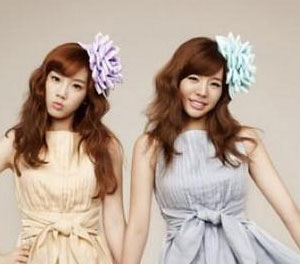 粉紫代表神秘,粉蓝代表快乐,一紫一蓝的烂漫盛开的花朵发饰,虽然搭配相似的中长卷发造型,但却代表出少女时代中女孩们的不同心思的哦。