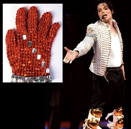 2009年6月25日,一代流行天王Michael Jackson的突然离世令全世界的歌迷哀痛不已,而原定他的2000件演出服、私人物品及个人收藏等的拍卖会也变为只是在美国Grammy Museum进行展览。展览中的这些服装以及演出道具展现了这名流行天王独特的个人品位。Michael Jackson经典的手套镶满了Swarovski水晶,他的很多演出服装及配饰上都装饰着宝石,最大的一颗大概重达15磅。