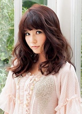 发型诠释:超蓬松的大波浪发尾,看似随意,却很精致,犹如一位气质优雅的公主时刻散发出浪漫的气息。过眉的齐刘海把眼神衬托得更温柔,配上具有光泽感的棕红发色,会让整个形象大加分!冬天本来就是要穿得厚厚的、暖暖的,所以MM们也不要找各种理由把秀发绑起来,换个浓浓暖意的公主卷发,像日剧的女主角一样,很有年轻时的恋爱感觉。