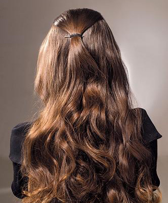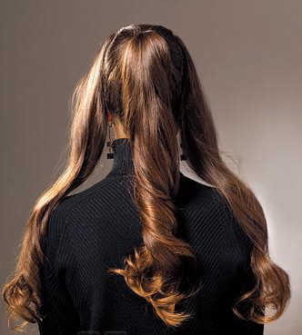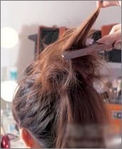 4、中间的发束自然散开,以卷发棒略作处理既可。