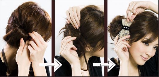 步骤1、先将头发全部挽起后,将头发扭转约5至6圈固定在右后方