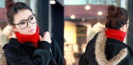 高脖领毛衫与帽子外套的层叠已经加重了头部周围的分量,所以披肩的散发在这个时候就显得非常的繁杂,不够利索,所以简单的把头发盘起来,不仅可以让头发很规整的盘扎起来,同样也会让面部的轮廓鲜明的凸显出来。整体显得十分的协调。