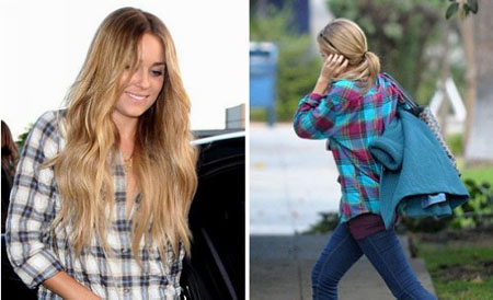 发型网点评:“格子控”的女生们请注意啦,同样中意格纹衬衫的劳伦·康拉德这两款发型,无论是自然的长发还是简单的马尾都是格子的绝配哦。