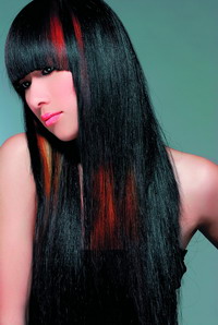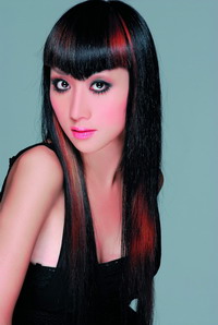 如果想减轻刘海儿的厚重感,可适当地挑染一些颜色来缓冲视觉,今年比较流行的挑染颜色是橙色、暗红色和亚麻色。