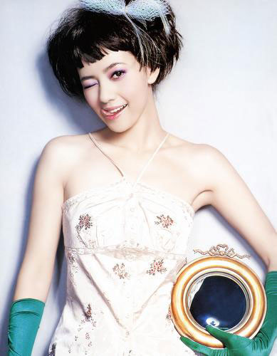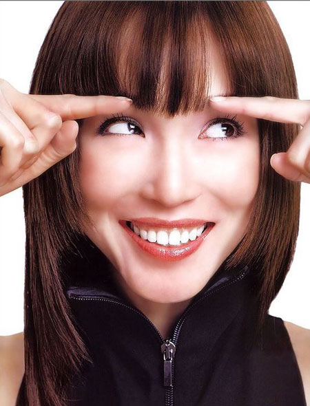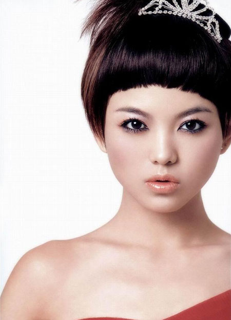 齐刘海是07年大热,蔡依琳蓬蓬的发型配搭整齐刘海娇俏可爱。