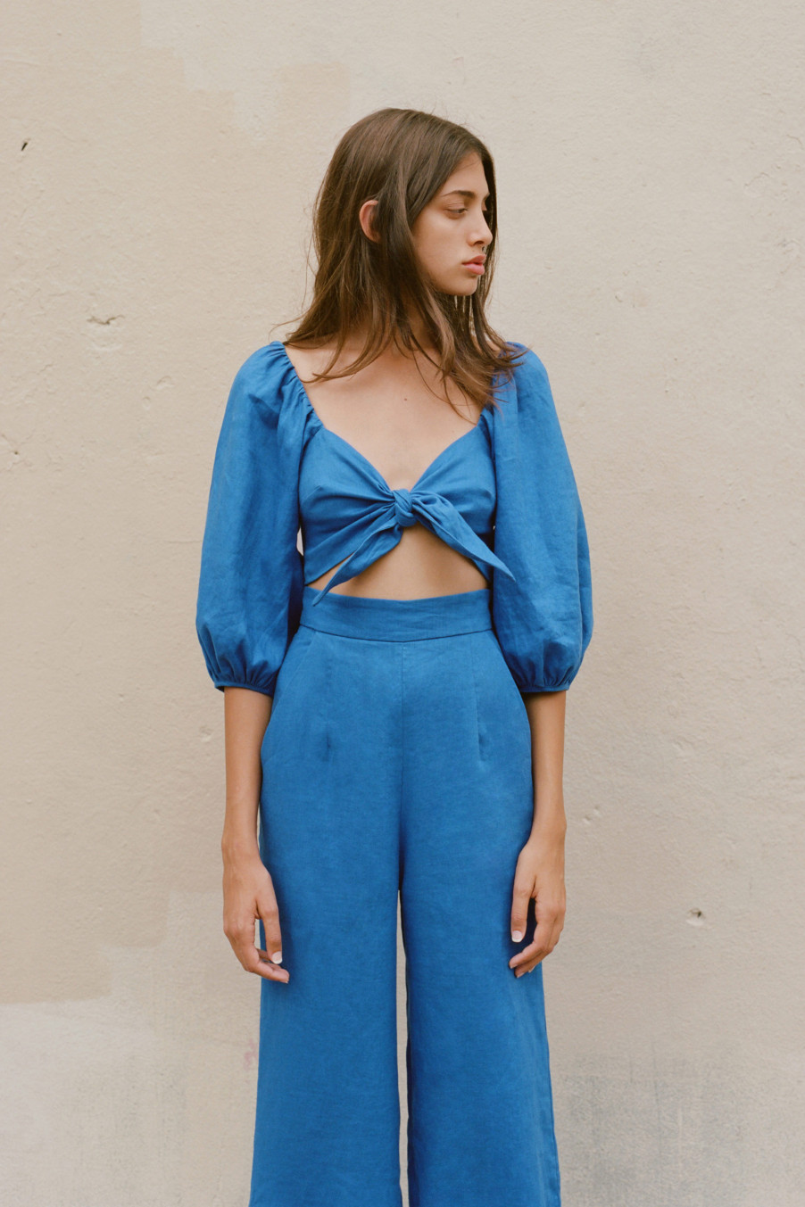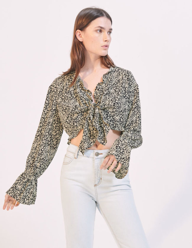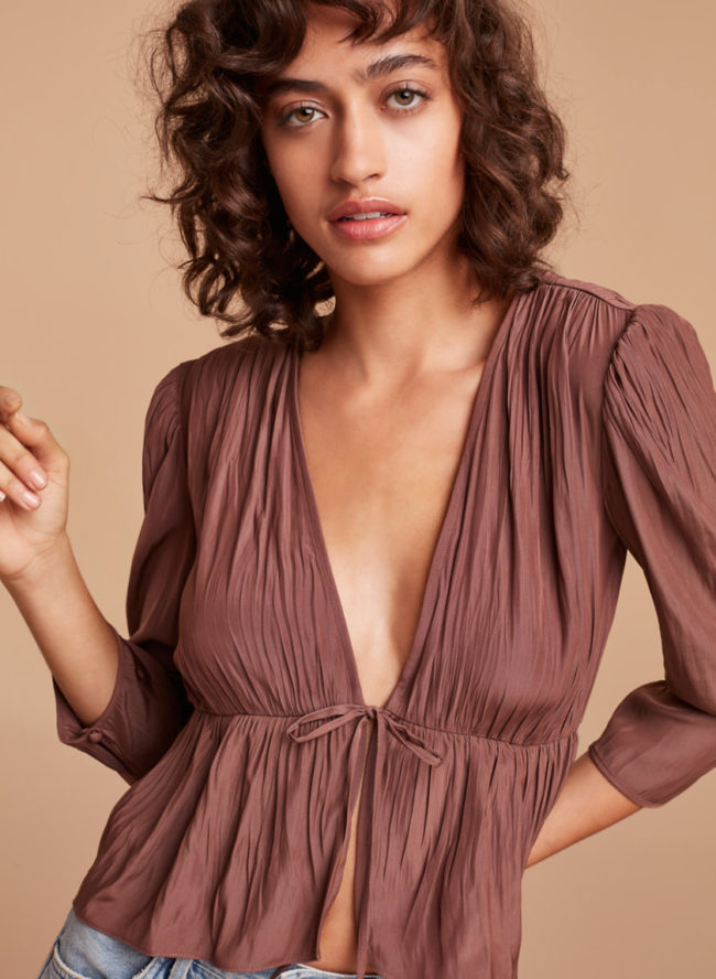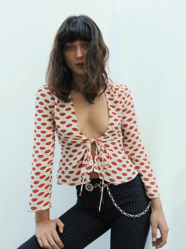 法国Bianca Top的特点是开V领低胸,在下胸肋骨处打一个蝴蝶结,让下摆衣折有着宛如荷叶散开的飘逸感,既清凉又修饰身材。