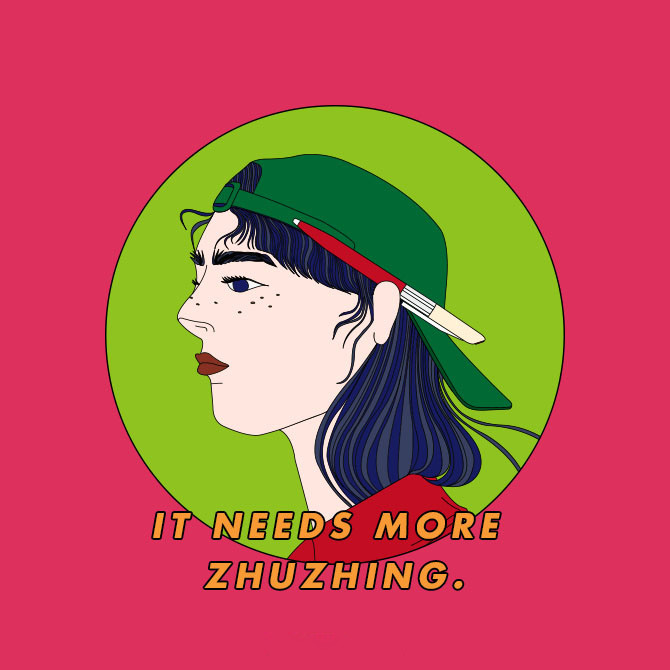 Zhuzhing 这个字是创意总监的常用字,意思是指达至完美的小改动。通常在设计需要作些微改动时,就会用上这个字,大概设计师们听到这个字也就同时代表又要工作了吧!