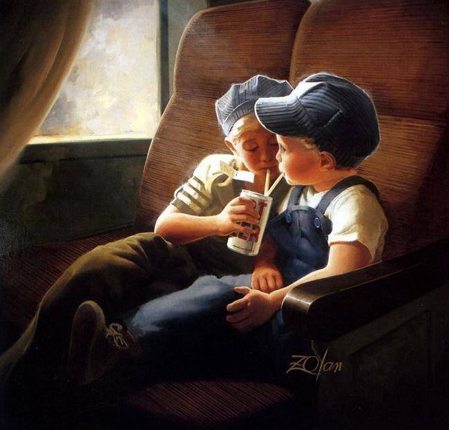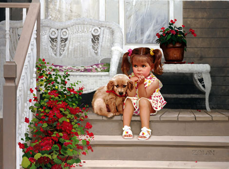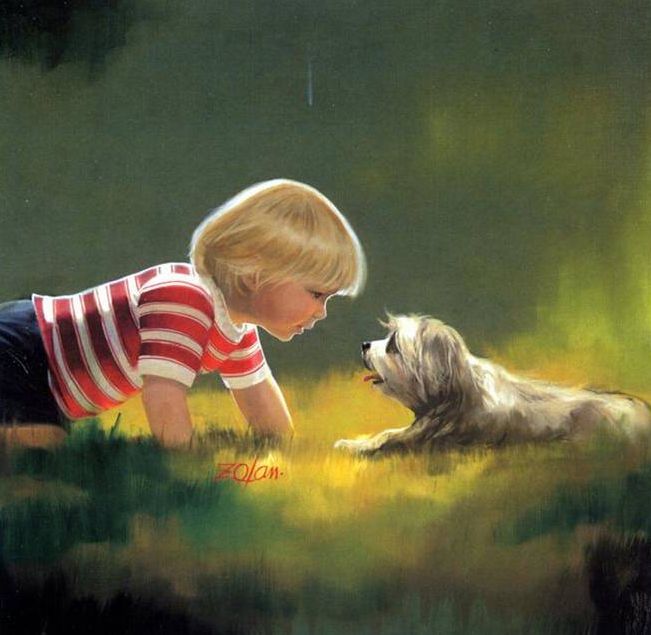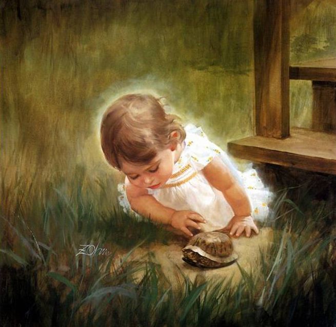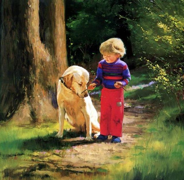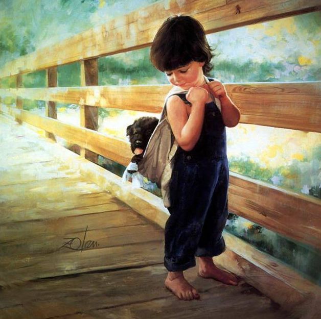 法国画家Donald Zoland,他的世界都是金色的,美好的,至纯至净的,满满的爱。他真诚、童趣,充满对孩童,对小动物,对大自然的爱。