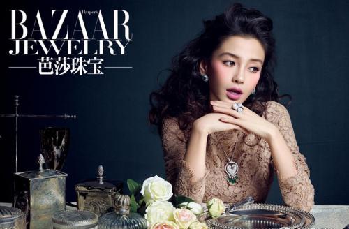 Angelababy封面大片 复古礼服演绎性感奢华珠宝