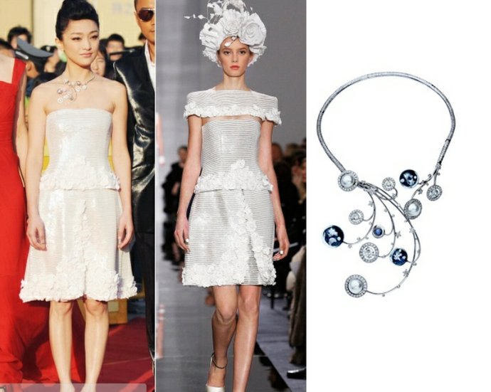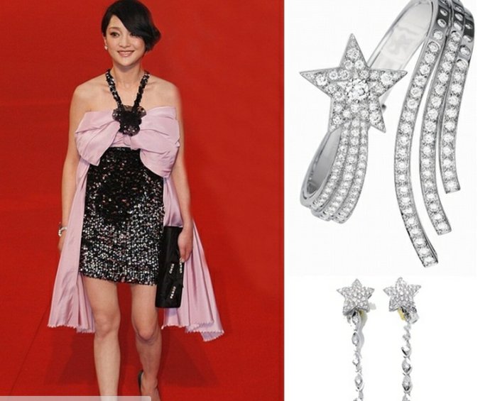 周迅2009年亮相上海国际电影节开幕式红毯,身着CHANEL 2007秋冬高级定制服佩戴CHANEL高级珠宝彗星系列。