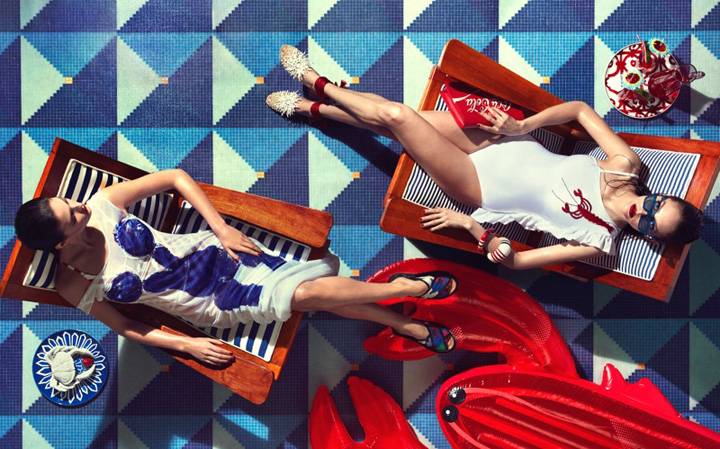 摄影师 Andrew Yee 为《How to Spend It》杂志拍摄一组泳池照,模特 Auguste Abeliunaite、Charlotte Wiggins 与 Xannie Cater 共同出镜。
